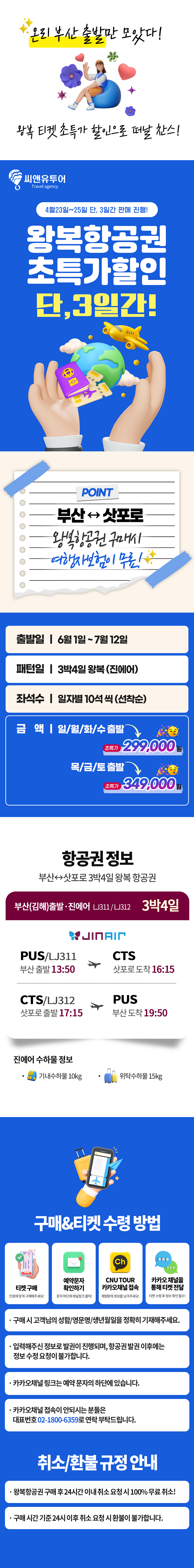 [초특가] 부산(김해) ↔ 삿포로 왕복항공권+여행자보험 포함