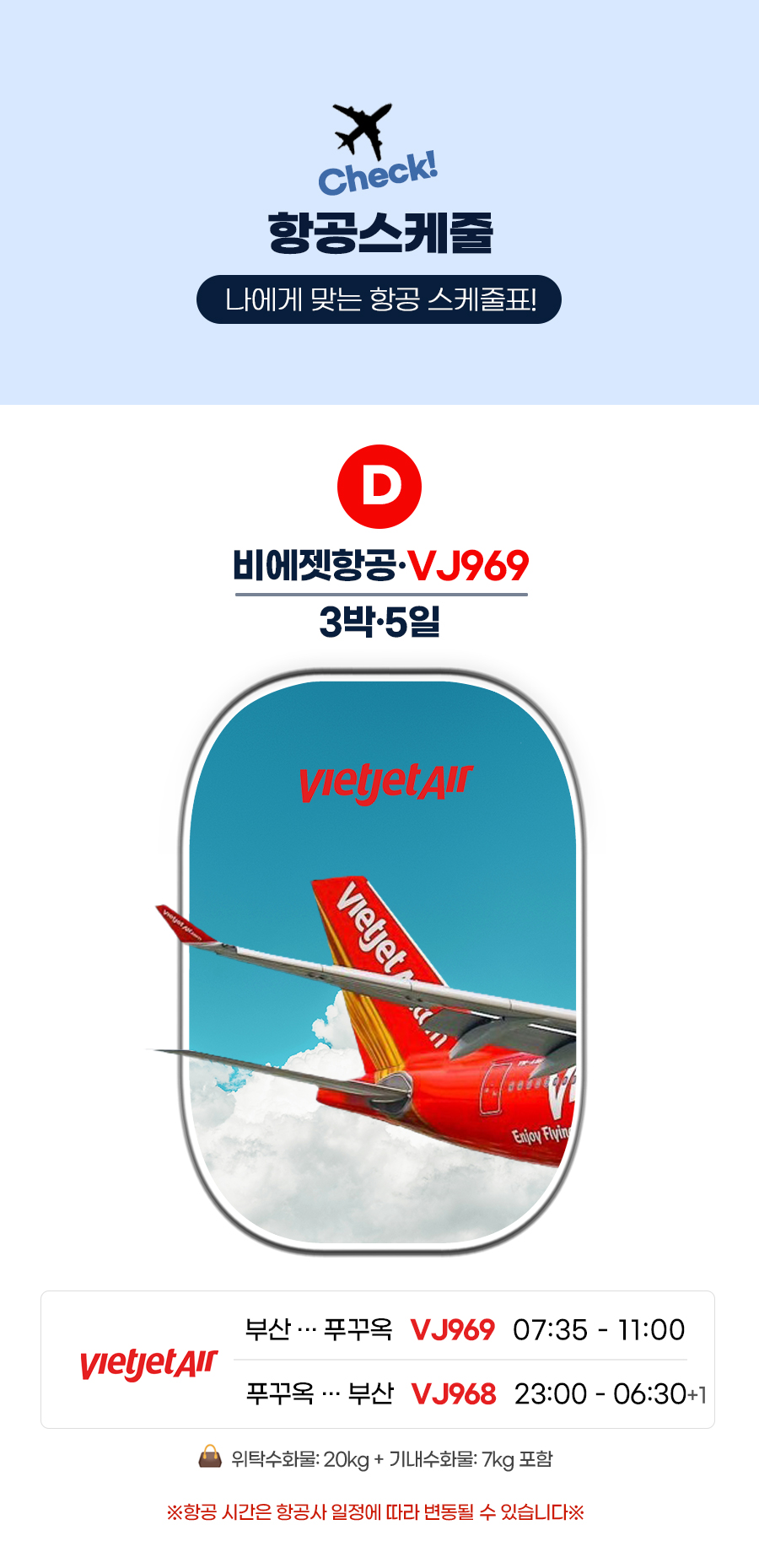VJ969총 5시간 25분 소요직항 |